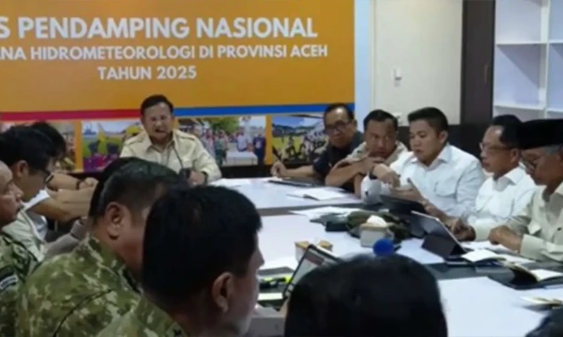 Presiden Prabowo Subianto (tengah) memimpin rapat koordinasi penanganan dampak banjir bandang, (Foto: Dok. Sekretariat Presiden)