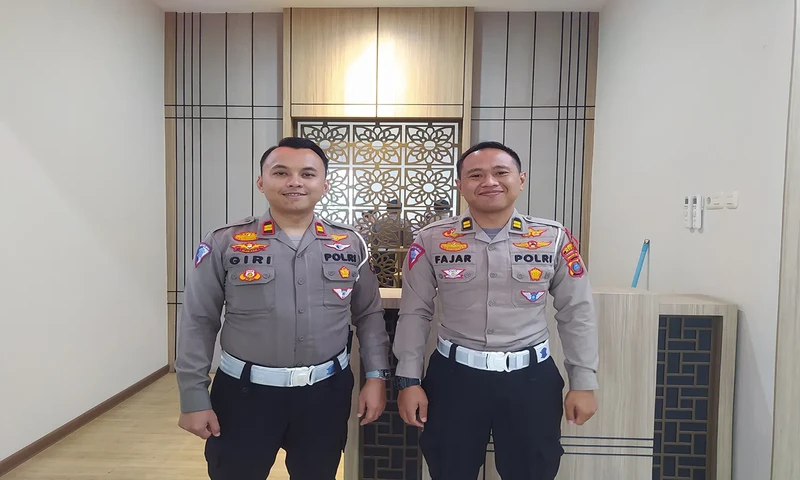 Kepala Urusan Pembinaan Operasi Lantas Satlantas Polrestabes Medan, Iptu Janitra Giri Satya S.Tr.K (kiri) bersama Kanit Regident Satlantas Polrestabes Medan, Iptu Fajar Prabowo S.Tr.K (kanan) di Kantor Satuan Pelaksana Administrasi SIM Polrestabes Med