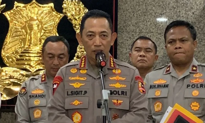 Kapolri Jenderal Listyo Sigit Prabowo usai melakukan pertemuan tertutup sekaligus penandatanganan MoU dengan Menteri Kehutanan (Menhut) Raja Juli selama kurang lebih satu jam di Gedung Mabes Polri, Jakarta Selatan, Kamis (4/12/2025), (Foto: Dok. Kompas)