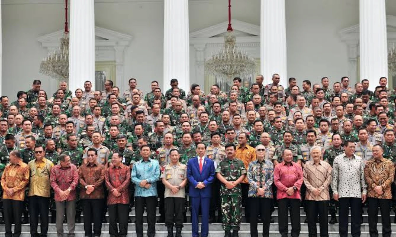 Presiden Jokowi saat pose bersama TNI dan Polri. (Foto: Dokumen Sekretariat Kabinet)