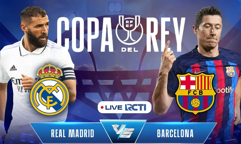 Real Madrid dan Barcelona akan bertemu dalam laga leg pertama semifinal Copa del Rey musim ini di Santiago Bernabeu pada Jumat (3/3/2023) dini hari WIB. Duel ini akan disiarkan langsung melalui live streaming di Vidio. (Foto: Twitter/@@SiaranBolaLive)