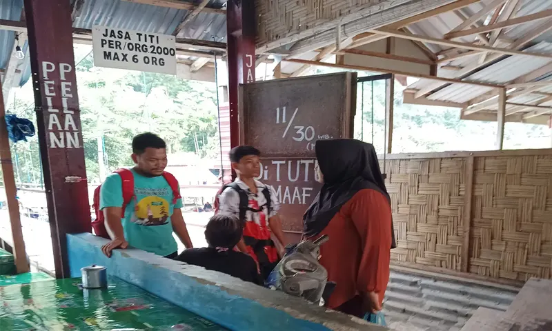 Banyaknya pungutan liar di lokasi wisata dinilai akan melemahkan sektor pariwisata, salah satunya kutipan biaya menyeberangi jembatan di Bukit Lawang, Langkat. (Foto: PARBOABOA/Fika)