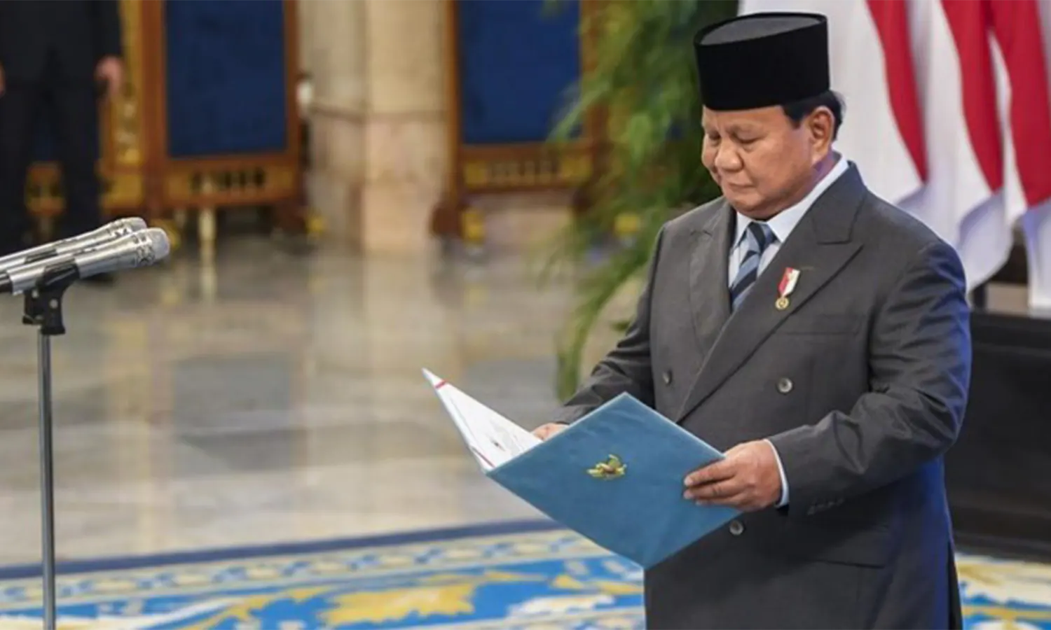 Prosesi pelantikan berlangsung khidmat, dipimpin langsung oleh Presiden Prabowo, yang memimpin pengucapan sumpah jabatan di hadapan para pejabat baru dan tamu undangan.