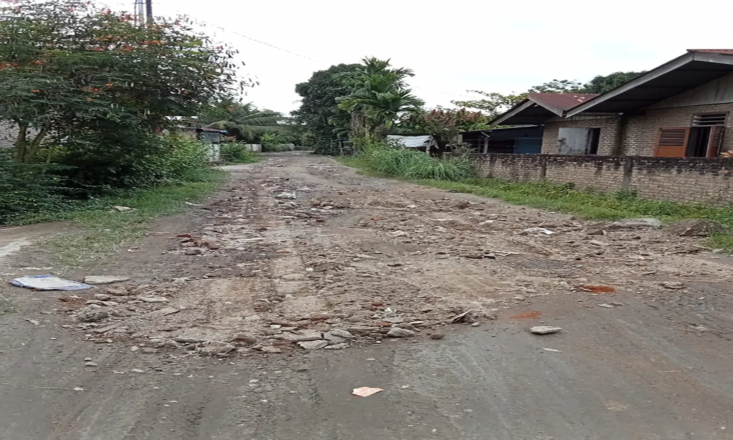 PARBOABOA, Tebing Tinggi - Bertahun-tahun, warga Desa Tangkahan Pasir, Kelurahan Teluk Karang, Kecamatan Bajenis, Kota Tebing Tinggi, mengeluhkan jalan rusak yang tak kunjung diperbaiki pemerintah daerah setempat.