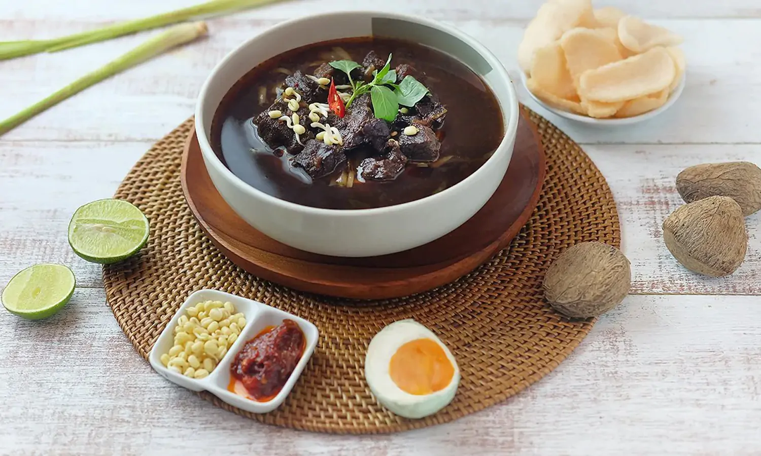 Biasanya, rawon disajikan dengan nasi hangat. Dilengkapi dengan tauge kecil, telur asin, daun bawang, kerupuk udang, dan sambal, rawon daging sapi yang segar dan gurih ini terasa lebih enak. Yuk simak kelanjutannya!