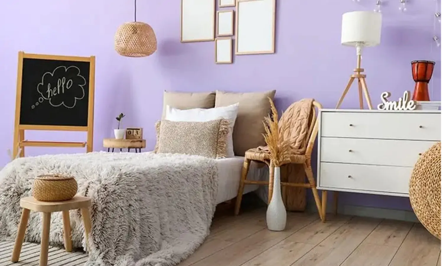 Kamu juga bisa kombinasikan dengan rona putih yang akan menghasilkan aura segar untuk menciptakan kesan sejuk dalam rumah. Warna lavender sangat cocok untuk diterapkan pada dinding kamar tidur.
