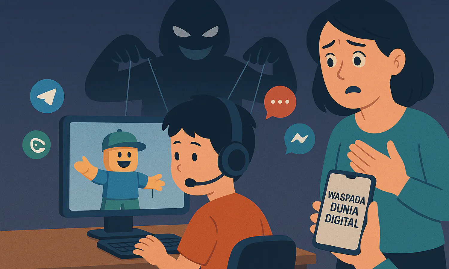 Menurutnya, permainan daring seperti Roblox kerap menjadi pintu masuk awal. Melalui interaksi di dalam permainan, anak-anak bisa diajak berkomunikasi dengan orang asing yang kemudian menggiring mereka ke grup tertentu di platform seperti WhatsApp atau Telegram.