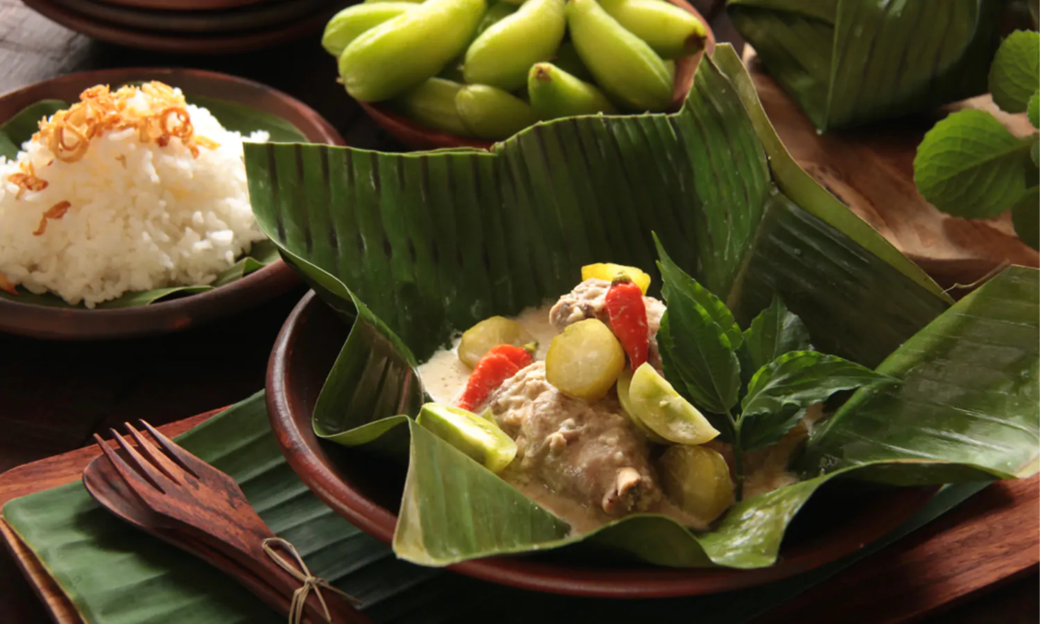Makanan tradisional ini umumnya diberi bumbu iris lalu dibungkus tum dengan daun pisang dan dikukus. Kaldu ayam yang keluar saat dikukus akan menyatu dengan bumbu iris yang sederhana. Rasanya gurih, asam sekaligus pedas. Semakin enak dimakan dengan nasi hangat.