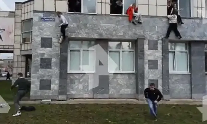 Rekaman lain menunjukkan para mahasiswa melompat dari jendela lantai pertama gedung. Puluhan orang dilaporkan membarikade diri mereka di ruang kelas, menggunakan meja dan kursi untuk memblokir pintu.