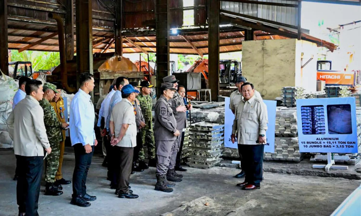 Prabowo menjelaskan bahwa aparat penegak hukum telah menyita enam smelter timah ilegal yang sebelumnya beroperasi tanpa izin di wilayah konsesi PT Timah.